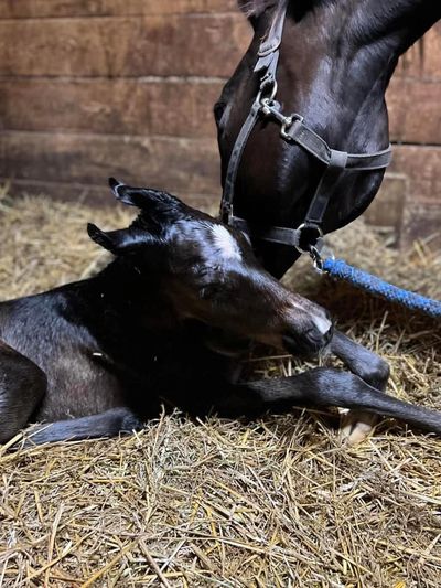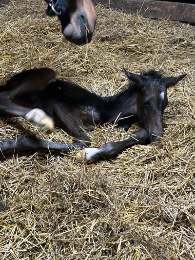 Westphalian bay filly, star, 3 socks, sired by Encognito (Earl x Ramino Z) out of Egan (Navarone x Oxford). Should finish 16.3h. Custom foal for Skye S.